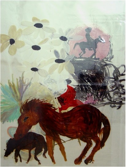 Fúcares Gallery in Madrid is pleased to present a solo exhibition of Elena Blasco’s recent work. This show is made up of 18 paintings of acrylic on transparent acetate. Working with transparencies involves overlaps, superimposed elements, coincidences, fragmentations, random incidents, an unplanned amount of colour... All these factors, overlapped and crowded together, are those upon which the artist has built her latest work.
