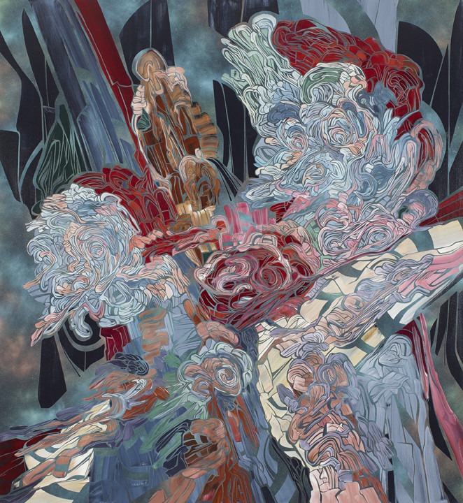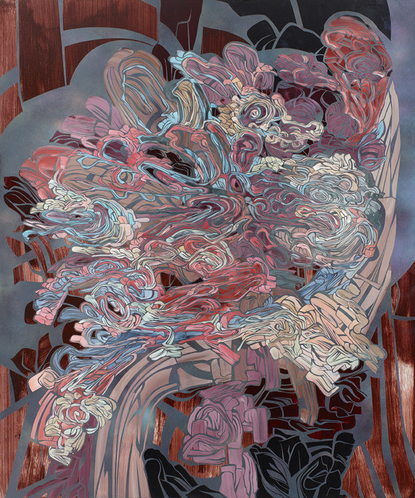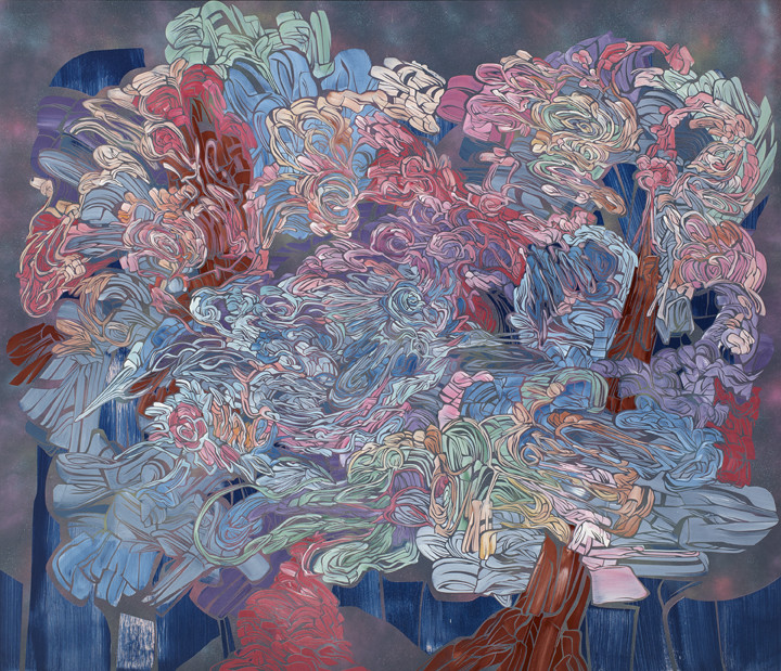 Each work expresses moments of spirited inspiration with elegant line defining dynamic overlapping - sometimes even churning - compositions that cannot be defined as having a central or specific subject and therefore remain abstract. The interpretations are as diverse as Perez’s influences, which range from pulp fiction and sci-fi cover art, which are specific to this new series, to larger influences, including musical composition, Venetian and Romantic painting, and the Italian Baroque.