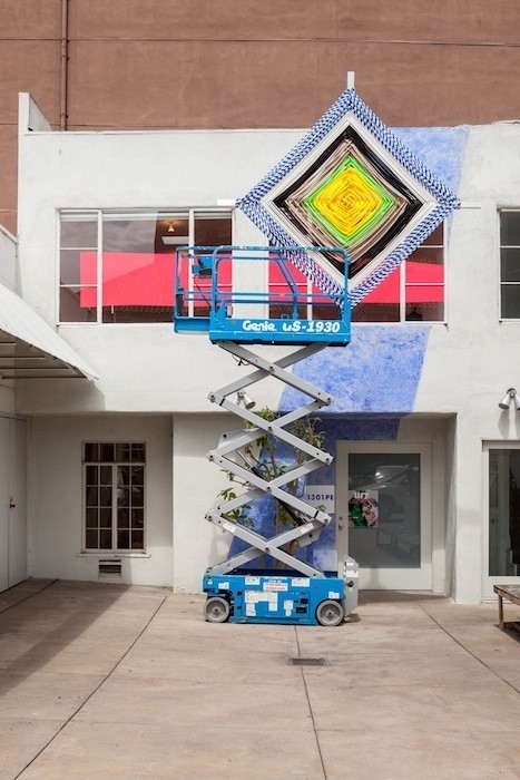 Jessica Stockholder 10 Jul - 31 Aug 2013 © Jessica StockholderLift Series, 2013Chalk, acrylic paint, scissor lift, godseyedimensions variable JESSICA STOCKHOLDERLift10 July - 31 August 2013 www.1301pe.com