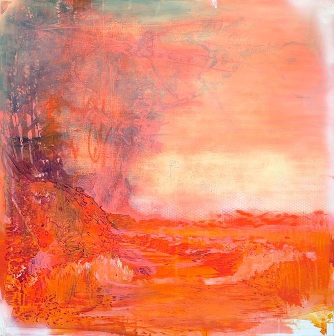 Heli Hiltunen’s exhibition ”Wish to get there before dark” consists of photographs, paintings and collages. Her work is marked by her wide range of visual thinking and subtle considerations of the essence of the image. White ink has fallen on an old photograph. A landscape photographed through a large lens turns into a ball of light with soft contours. The surface of a black screen dotted with fingerprints allows the viewer to see the marks of hundreds of touches, to discover forms, or to see a landscape. In her collages of forest themes, Hiltunen cut sequins from old photographs that she then glued to the surface of another picture. Balls painted with silver paint flow on the surface of the image, appearing to be darker or lighter according to the direction of the light falling on them. In her layered landscape paintings, Hiltunen has occasionally ground the painted surface smooth before continuing work.
