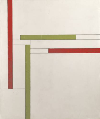 His paintings and preparatory studies are often based on mathematical formula: they are geometric, considered and linear. Although seeming in some cases similar to the works of Mondrian, Vantongerloo used a different and carefully considered selection of colours and held an aesthetic philosophy quite alternative to Mondrian’s.