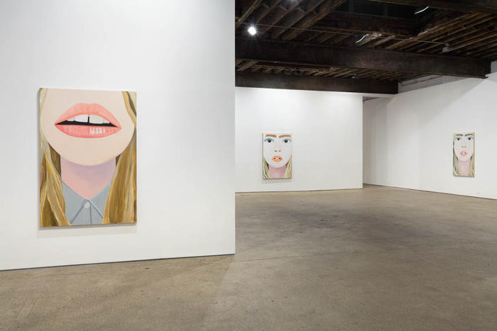 August 8, 2014 – For his forth solo show at Anton Kern Gallery, Los Angeles-based artist Brian Calvin presents a group of paintings of faces, closely cropped or just of mouths and lips, as well as figures posing, some reflecting in a mirror. Calvin’s severe framing, along with his carefully scaled compositions, creates a narrowing and fixing of focus. It shapes a sense of proximity and personality, infusing the work with strength of character and a jarring presence.