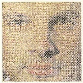 In her colored pencil drawings, THERESA LÜKENWERK (b. 1962) investigates the relationship between abstract color values and the motif of the object on the surface of the image. Lükenwerk often selects images from diving or travel magazines as the starting point for her work. Details of the images — often just body parts — are dissected on the computer into four print colors (red, blue, yellow, black) and thus reduced to their basic visual elements. Working at a luminous desk, she then uses stencils to reconnect the individual dots of each color in the drawing, once again reshaping the motif in a time-consuming process.