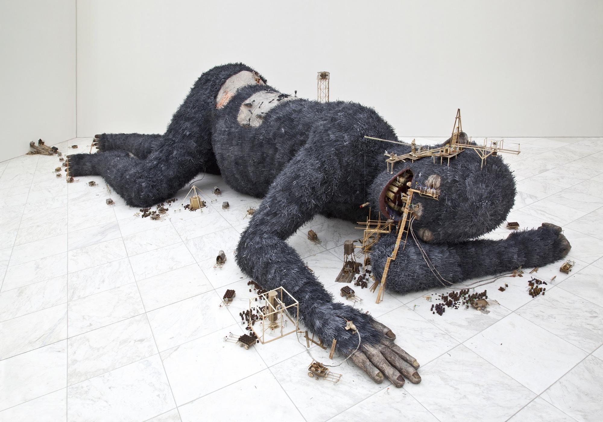 The story of our furless species on Planet Earth is told here in two playful installations that fill the exhibition space. Matthias Böhler (*1981 Aachen) and Christian Orendt (*1980 Sighișoara, Romania) formed their artistic duo in 2008. In this exhibition a huge monkey-like creature serves as a multiple source of “raw materials” for busy squads of workers. At the heart of the second installation a spaceship resembling a lotus bud invites visitors to come inside and explore.