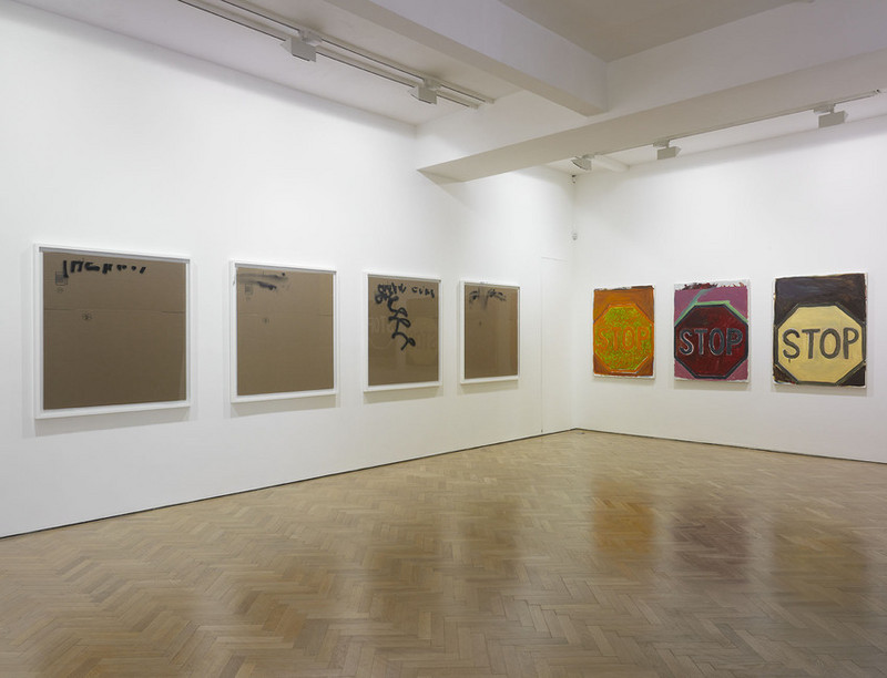 For a decade, Josh Smith has relentlessly and rigorously mutated and distorted notions of signature and painting. The artist is known for his extreme prolificacy, and for exploring ideas of authorship and originality. Fittingly, in the new series of stop signs presented here, he links together works with a signified meaning unlikely to be replicated; it is arresting, in and of itself.