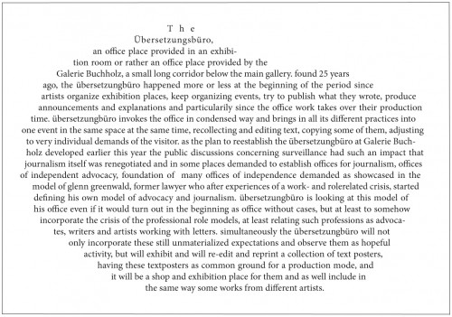 Josef Strau 05 - 30 Nov 2013 JOSEF STRAUÜbersetzungsbüro - Office for Duplication5 - 30 November 2013 www.galeriebuchholz.de
