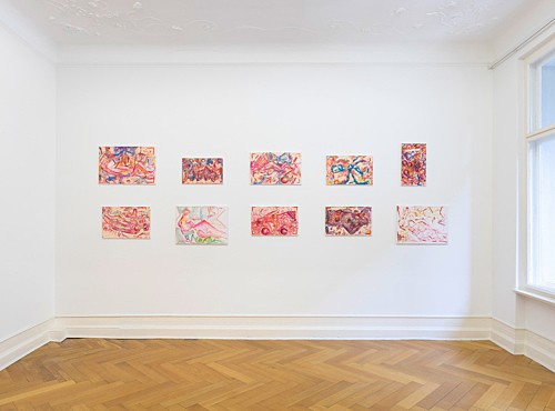 With “Zodiac Nudes” Galerie Buchholz is proud to announce its seventh solo exhibition with Jutta Koether, her second at Galerie Buchholz’s Berlin location. The installation, on both the first and second floors of the gallery, is comprised of new paintings.