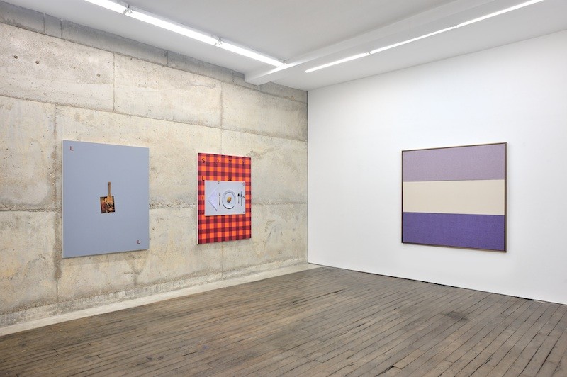 These works conversely set up a sculptural tension between two conventions of painting as an object; the flatness of the picture plane and the architectural construction of the support. Figure and ground compete spatially and blur the edges between image and support, material and application. The use of a canvas as the supporting structure for a second mirrors the classic device of the mise en abyme, historically used to quote another work or to simply depict a “painting” within the painting. Collaged elements interrupt the flatness of \?re-pri-zen-ta-shen, -zen-\ and reveal painting’s ability to be quickly subsumed into image, acknowledging their inevitable flattening.