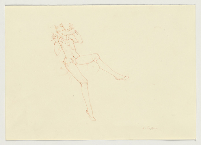 The Dead Man –inspired by Georges Bataille’s text from 1964 -- is when and where sexuality becomes full fledged. It is composed of 14 drawings “dans un chemin de beauté”. It is an elegy to Marie’s dead lover written by Bataille in the language of sexual ecstasy, here with full awareness of the body. Soulou’s The Dead Man recognizes the body as the arena where the soul with its pain, its pleasure, its longing and its violence are staged.