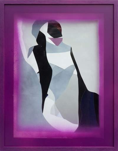 Nico VASCELLARI sees his collages as as many studies on light, and more specifically twilight, following for their production a predeterminated rule : each collage is made from one magazine, in which the artist cuts each page to keep only the monochromatic areas, that generally correspond to the background of images. He then glues the pages, like as many sedimented landscapes, creating multi-layers and multi-colored abstract compositions from which silhouettes sometimes stand out.