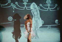 The installation Salomania takes up motifs from the silent movie, such as gazes, the active desire of Salome, and the figure of the veil, but also elements of Art Deco, which the movie celebrates in the costumes and the backdrops, like palm trees made out of ostrich feathers. Images of farness and of the technological can be seen as part of colonial politics, at the same time they seem to have been transformed by the film Salom. Here they are established as images that make space for female or transvestic fantasies and desires. A space between the genders and between Orient and Occident appeared to be possible. A documentation on different performers of the dance of Salome at the turn of the 20th century proposes a sort of archaeology in the history of queer performance and modern dance.