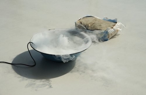 Science, nature and technology play a key role in the installations of the Swedish artist Nina Canell (born in Växjö, Sweden, in 1979). Her works, in which she combines all kinds of everyday objects, discarded electrical appliances and natural materials such as water or wood into cinematic assemblages, look like test assemblies in an improvised laboratory. In them, she often refers to scientific experiments from the beginning of the modern age, visualizing biological and physical phenomena in unaccustomed contexts. The cause and effect of movement sequences become visible as chain reactions, and energy transformation processes and changes of aggregate states are sensually perceivable. Many of her installations include noises that the artist produces herself by, for example, translating arithmetical number series in chords or by recording and amplifying sounds of electromagnetic storms. The fragile aesthetics inherent in Canell’s works are primarily fuelled by the synaesthesia of these components, which only produce a coherent harmony when their interplay is precisely arranged.