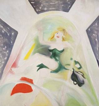 In contrast to many contemporary figurative painters, von Hellermann has chosen to paint from imagination rather than photographs. Translating mental images into paint with an almost automatist spontaneity, she explores the invented space of the unconscious rather than the perspectival space of photography. The paintings seem almost to float away from their physical support, a weightless effect achieved by von Hellermann's unique application of pure pigment to unprimed canvas. Von Hellermann says, "what interests me is how the mind works and how dream images come together from things you've seen, read, and experienced both years ago and yesterday."