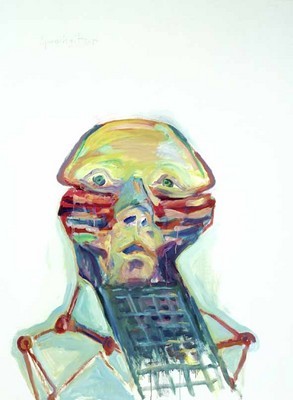 So these are not conventional self-portraits. Rather, they visualize an engagement with the body's inner sense, as it comes across in her works 'Hospital' or 'Speaking grille'. Contrasting colouring and strong body shapes give the works a powerful, even drastic impact. Nevertheless, they reflect fragility. The body portrait 'You or I?' on the other hand works by positioning the body directly to face the observer and this challenging question. The effect is provocative, threatening but, at the same time, ironic and almost humorous.