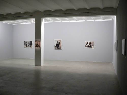 But: both series form one single work of a today’s artist who irritates with subtleties the idea of timely coherence and who awakes doubts about the credibility of authenticity. The artist is enforcing this conflict by showing the obviously same persons within the documents from different times. And the film projected in the exhibition space is continuously shifting between these differerent time spheres, both in its substantial as well as in ist formal aspects. The artist is thus constructing a historical continuity and demolishing it at the same time.