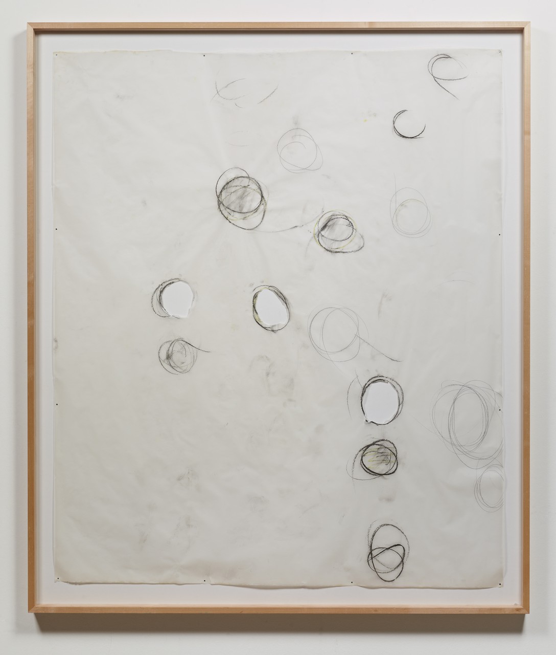 circular cuts, charcoal and wax chalk on transparent paper