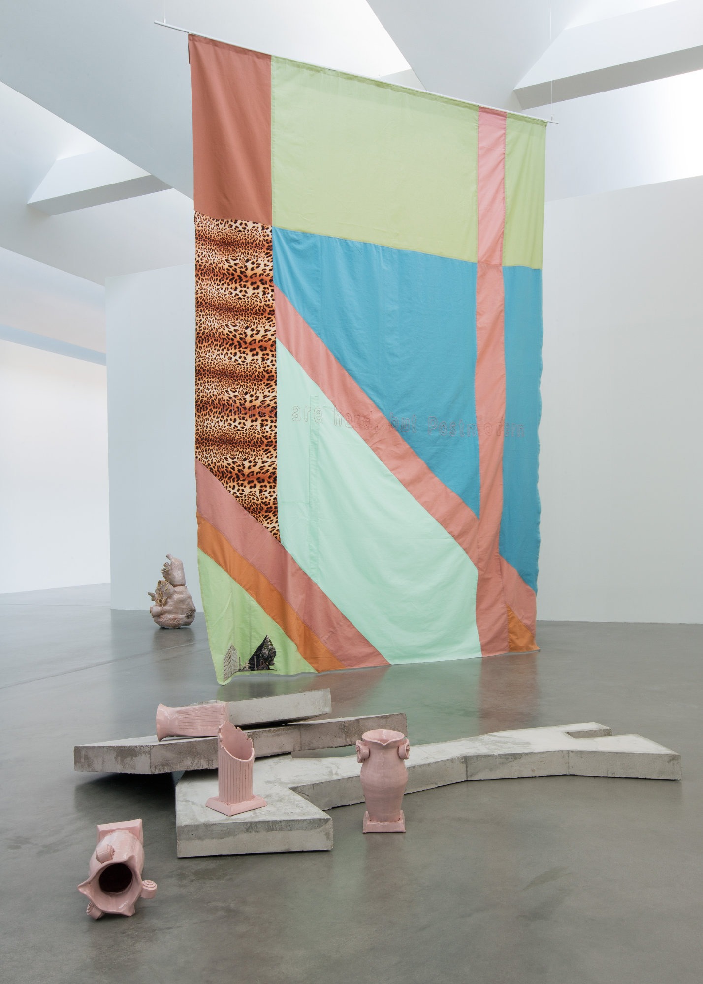 In her solo exhibition Der unerfreuliche Zustand der Textur (Predicament of Texture) in the Maschinenhaus M2 at the KINDL – Centre for Contemporary Art, the artist Isa Melsheimer will present various series of works from recent years, including concrete sculptures, ceramics, textile works, and gouaches, as well as her only video work to date, Wasserballett für Marl (2017).