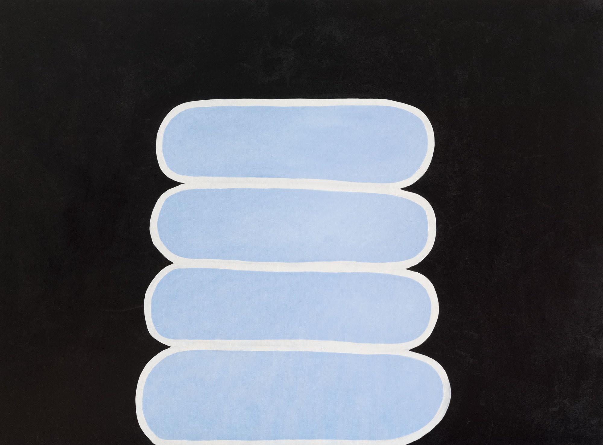 Raphaela Simon (* 1986 in Villingen) also studied under Peter Doig at the KunstakademieDüsseldorf. Today she lives in Berlin and is known for her somber oil paintings with simple,indistinct forms against monochrome backgrounds. She shows people and things which,because of their reduced depiction, are often only recognizable by their titles, which refer toordinary objects or motifs (such as Zuckerwürfel (sugar cube) or Säge (saw)). Her figures,sculptural or painted, remain anonymous and unapproachable. The faces are devoid of detailsand often seem extraterrestrial and oppressive; the figures are free of clothing and otherattributes. While she used bolder colors in older works, Simon mostly paints her currentfigures and objects in shades of blue, red, pink, or gray, almost always on black backgroundsthat draw the eye in like black holes. The resulting gloom is reinforced by painted cages orfences, in which Simon sometimes confines her figures. In addition to more recent large-scaleoil paintings, she presents faceless, oversized fabric sculptures made especially for theexhibition, which seem strange and yet interesting, even though or perhaps precisely becausethey cannot be categorized. Many of her textile sculptures were created at the same time asher paintings and reveal a dialogue with the works on canvas.