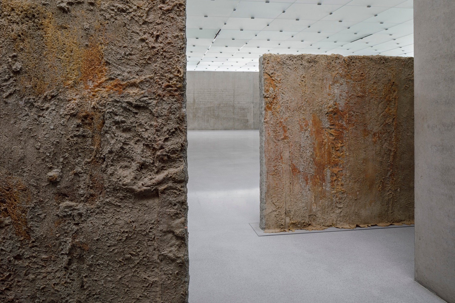 On the first of KUB’s three floors, Budor confines the space upon itself. Latex casts of the underground diaphragm walls stand against the ones of the gallery, closing the entrances. Conservation latex has skinned the sub-terranean surface, removing years of sediment and deposits. The tripartite work Kollektorgang (I – XIV), (XV – XXIV), (XXV – XXIX), all 2021, measures 29 meters in total – mirroring the width and length of the excavation pit that hosts the foundations.