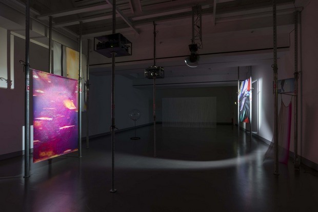OUTSIDE BEFORE BEYOND is a choreography developed especially for the spaces of the Kunstverein in which new sculptures, a video, animation, sound and instruments involved in staging productions (such as spotlights or theatre curtains) appear as equals in the form of mutually overlapping chronologies and narrative techniques. With a view to the exhibition’s title, Frankovich explores the possibility of annulling fixed points of time and space, so that the displayed works constantly reconfigure themselves within the confines of her parcours – not least through the movements of visitors. These moments of motion and transformation are already implicit in the individual components: an animation shows a sequence of figurative metamorphoses, the dyed fabric of the image-based sculptures reference articles of street-clothing from previous performances, plants are in a process of crossbreeding between two species. Proceeding from a refutation of typological thinking, Frankovich opens up a scenario that undermines a linear chronological before-now-after continuum, and reacts instead to a speculative temporality; a scenario in which static objects appear animated and bodies emerge in their flickering presence and absence. The conditionality of the human and non-human, of the material and non-material, she initiated culminates in a reinterpretation of their artistic fields of action within our physical, terrestrial and extraterrestrial environment.