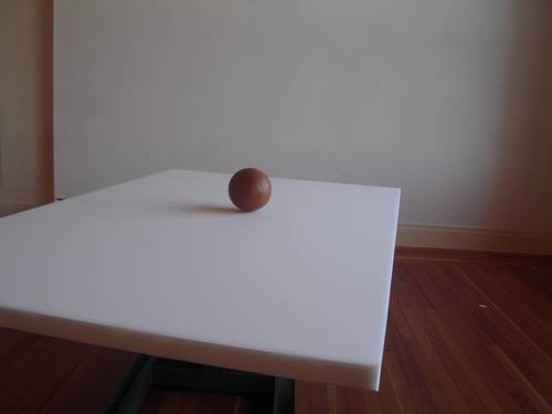 'Rundlederwelten' kill most of the artwork by taking it out of its original context and attempting to make a theme park. As is the curse with many large themed exhibitions, the pieces that might be good lack the space to breathe. But there are glimpses of light. In Robin Rhode's digital animation, Hondje (2001), four male youths in an urban lot pretend to do tricks and balance a ball – a ball that is actually several drawings on the wall behind them. This si an interesting way of reminding us about the fact that football was and, to a certain degree, still is a proletarian sport. There are some others, like Thomas Virnich's Colosseum (the audience will be larger, the more the stadium shrinks) (1994 – 2005) which makes a good point about the history of the stadium, but the only great piece is the one by Serge Spitzer. In his Global Culture (2004 – 2005) a (foot)ball balances of a table. As it rolls in one direction, the table moves in te opposite direction. The ball never falls off. Daniel Birnbaum called it a masterpiece; I concur.