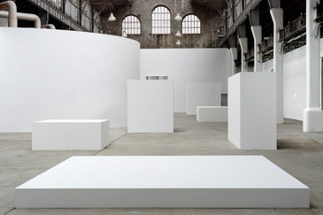 A series of eight paintings will hang along the walls in dialog with volumes emerging from the floor. Philippe Decrauzat is inspired by the drawings of Etienne-Jules Marey, father of the cronophotography and more specifically by the curves produced by the observation of respiratory phenomenas. Using these referential images, he generates a succession of parallel diagonal lines which rythm produces wavy visual effects. The volumetric constructions on the other hand will impose a physical and visual obstruction for the viewer. These volumes will become architectural elements as well as screens and pedestals generating shadow zones where three 16mm films will be projected. Creating a space that visually brakes and re-frames the paintings, the volumes interfere with visitors visual perception. In this environment, the light and volume display builds an invitation that almost demands us for a direct participation to keep moving.