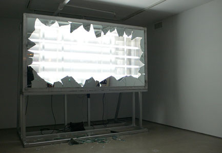 Maureen Paley is pleased to present Banks Violette’s second solo exhibition at the gallery. He was included in The Black Album in 2005 and his first solo show in 2006 was in collaboration with Sun O))). This exhibition will include a video installation, and will continue with a large sculptural installation in the first floor gallery comprising buckled aluminium screens constructed from modular units.