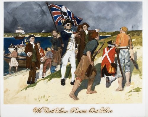 Taking its title from a painting by Aboriginal artist Daniel Boyd, which shows a landing by members of the First Fleet from the perspective of the First Peoples, the exhibition examines how histories of colonisation vary radically according to the perspective of the viewer — a settler to one party was deemed a pirate to those who were occupied.