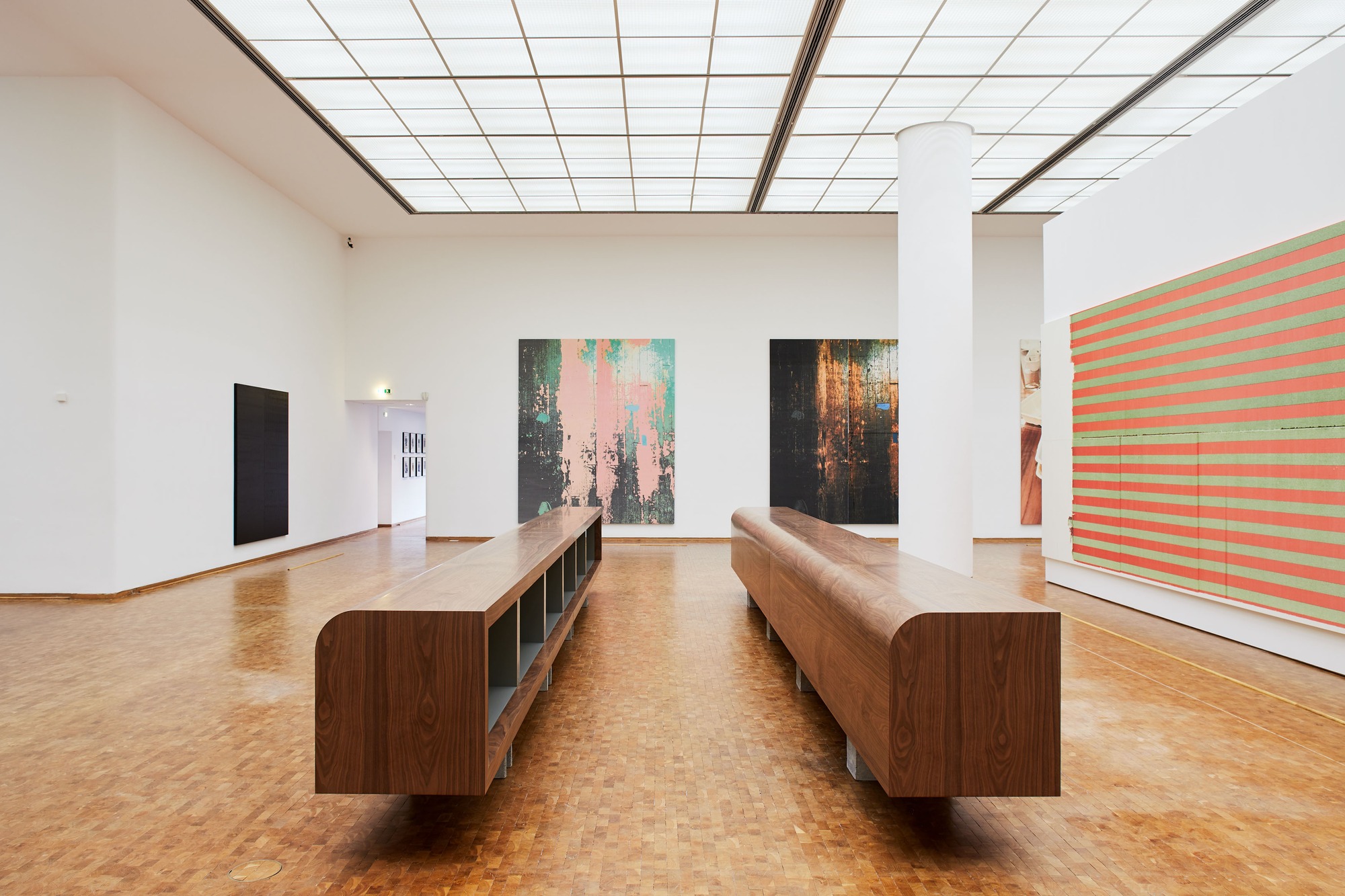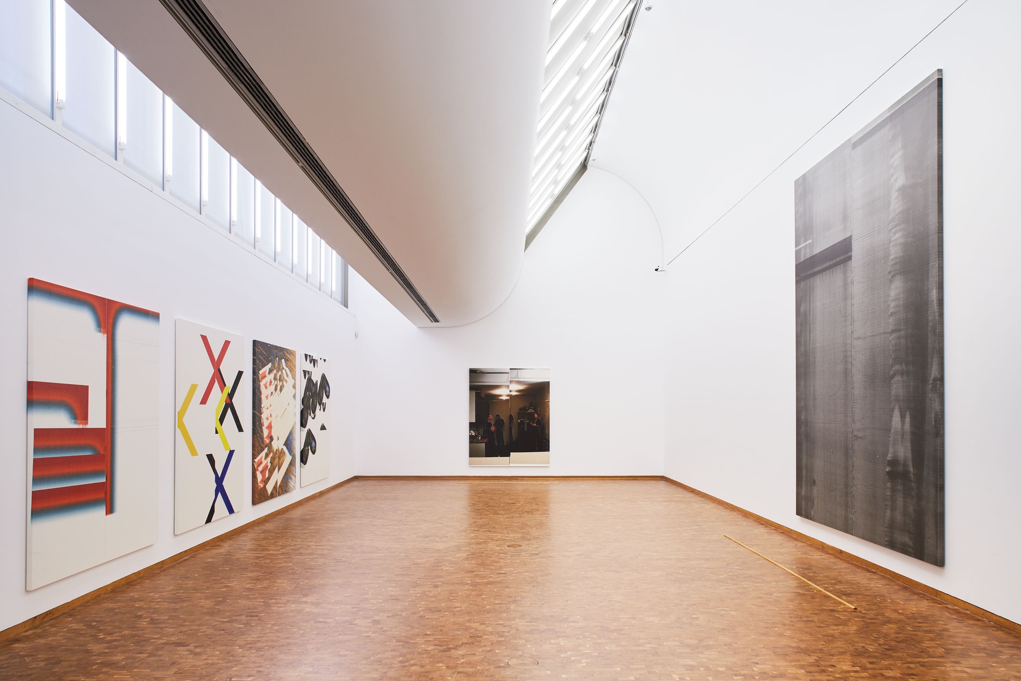 The exhibition has been developed in close collaboration with the artist. It brings together all the media he uses, from works on paper that Wade Guyton calls “drawings” to photography, sculpture, and his groundbreaking inkjet paintings, spanning the entire space for temporary exhibitions as well as the DC Hall and three adjoining rooms. Instead of presenting the works in chronological order, they are rather arranged into groups according to subject matter or themes, which reveals Guyton’s references to his own work as well as the development of his oeuvre. The earliest works include sculptures made of bent tubular-steel chairs as well as his “drawings,” printed ripped-out pages of art and design catalogues, an extensive selection of which will be presented for the first time. The latest works in the exhibition show the artist’s immediate environment, such as his studio and the urban landscape of New York. The integration of tools and furniture from the studio as well as strategies of sampling found forms and images are striking features of Wade Guyton’s artistic approach, which always adapts to the respective exhibition venue. A new outdoor sculpture on the terrace in front of the south entrance, for example, is not only a bronze cast of an existing work in the exhibition, but also shows aesthetic references to the saw-tooth roof of the museum. For the exhibition, certain adaptations to the museum’s building, such as walls and windows that were covered, will be removed. The bridge to the administrative wing will also be reopened, which will offer a wide-ranging view of the temporary exhibition area at the beginning of the retrospective.