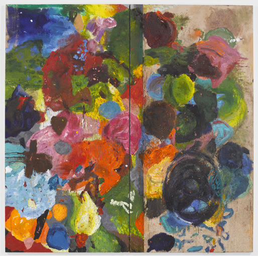 In the 1960s, Dine created a series of “Palette” paintings, in which he outlined an artist’s palette that was formally congruent to the shape of the canvas and celebrated its surface splotches and mounds of paint. In his new series, he looks back at those works and removes the formal structure of the palette, leaving an Orphistic, swirling celebration of paint.