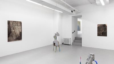 Known for his large-scale cast concrete sculptures referencing Hellenistic or Roman statuary, Matherly presents new small-scale abstract works. Elements from crutches and walkers are cut, reassembled, and contorted into various shapes, with cast concrete forms accreting around the metal and acting as misshapen connectors or nodes. In a departure from his recent work, Matherly expands his use of color as an expressive element. The works suggest a tension between line and volume, painting and sculpture, the industrial and the organic.