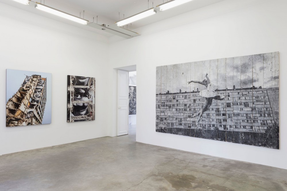 In 2014, when invited to produce a work for the New York City Ballet (NYCB), JR persuaded Peter Martins, director of the David Koch Theater, to put on a choreographic piece about the history of Les Bosquets and the riots of 2005. (Part of JR’s work for the NYCB can be seen in Perrotin’s Rue de Turenne space.)