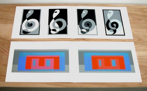Published by Harry N. Abrams and Ives and Sillman, just 4 years before Albers’ death in 1976, Formulation : Articulation is a collection of 127 silkscreen plates, 121 in color, organized into two portfolios, each containing 33 folders on which one, two, or four silkscreen plates are printed. The portfolio is accompanied by a text with Albers’ notes on each of the plates. Albers refers to these notes as “Statements of Content” in which he discusses the design and color selections and often comments on the work in relation to the plate previous to it. In fact, Albers took great care in selecting the order of the plates to create particular juxtapositions or series of his visual explorations.