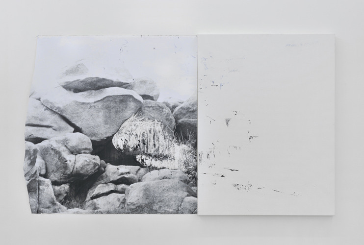 In the series Fade out, the works are no less ambiguous in their construction. The paintings have been carved with a laser machine to expose the three-dimensionality of the painting surface. In previous series, the artist was also interested by the idea of color applied to painting and photography. In a new photography series presented at Galerie Praz-Delavallade, Analia Saban is interested in the (de)construction of the photography. In this case, the emulsion is lifted in the last stage of the development process (in the darkroom, while the print is still wet). The result is a combination of drawing and photography, photography and painting, in which the emulsion is used as a drawing device to make markings onto the print. Lastly, a work that recapitulates the main concepts of the exhibition, Photogram with Hand, revisits traditional black and white darkroom photography by exposing the performance of developing a print: chemistry, materials; and time, experience.