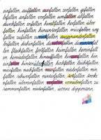 Tusche, Buntstift, Acryl, Textildruckfarbe auf Papier