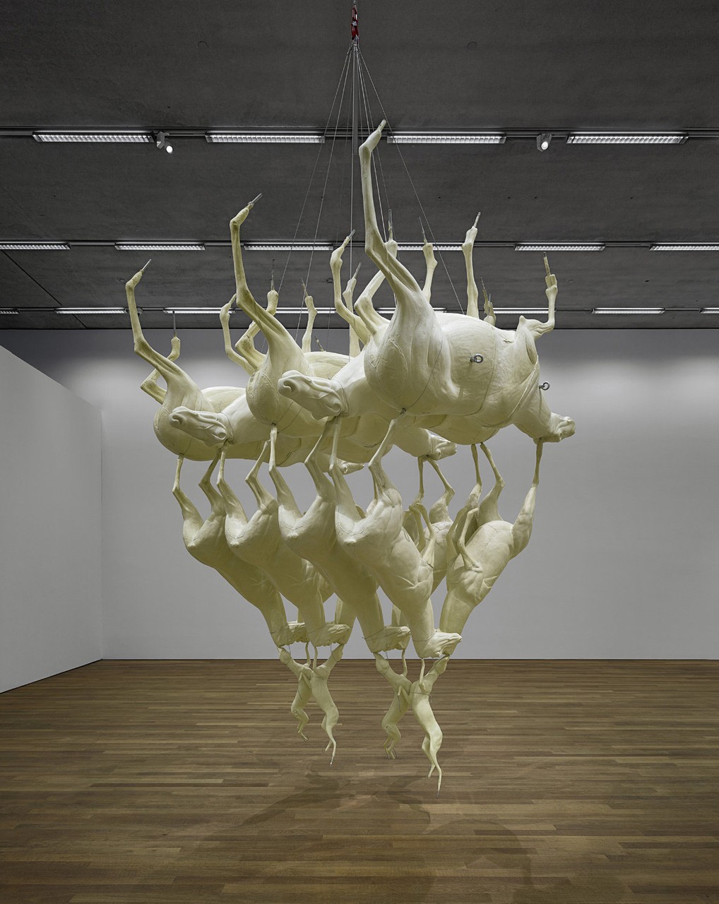 Bruce Nauman: Disappearing Acts, 17 March to 26 August 2018, Schaulager® Münchenstein/Basel, installation view with Bruce Nauman, Leaping Foxes, 2018, Polyurethane foam with steel and wire cables, Collection the artist, Courtesy Sperone Westwater, New York, © Bruce Nauman / 2018, ProLitteris, Zurich, photo: Tom Bisig, Basel