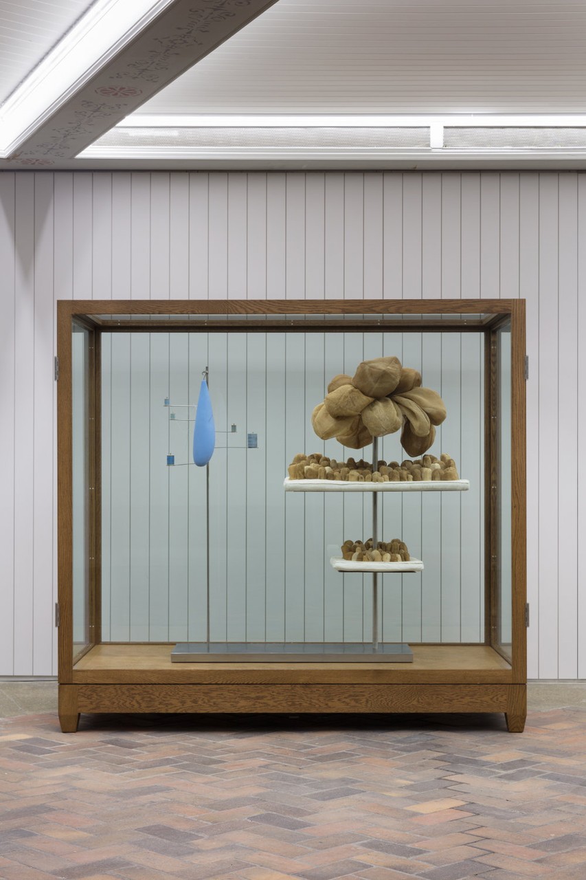 Louise Bourgeois, Untitled, 2007. Fabric, rubber, thread and stainless steel. 144.8 x 139.7 x 61 cm. White oak, glass and stainless steel vitrine: 193 x 208.2 x 101.6 cm. Courtesy private collection, Switzerland © The Easton Foundation / VG Bild-Kunst. Photo: Andrea Rossetti