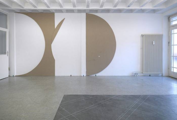 The artist removes an existing wooden wall in the gallery in order to lay bare the structure behind it. He cuts this wall using curved lines which reflect the proportions of the gallery space, and arranges the individual parts in a new manner on another wall. The resulting wall relief visualises invisible lines and in this way creates a cast of the space.