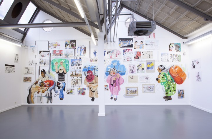 The personal and the political are always closely connected in Charlotte Schleiffert’s (NL) work. She gained international recognition with her expressive drawings and paintings featuring bright colours and impressive formats. In addition, Schleiffert has always made small-scale political drawings on topics such as intolerance, power, oppression, and poverty. In a mural-collage, she brings together a number of these drawings made on different continents in over a decade, in a compressed retrospective that deals with social imbalance, inequality and global labour conditions.