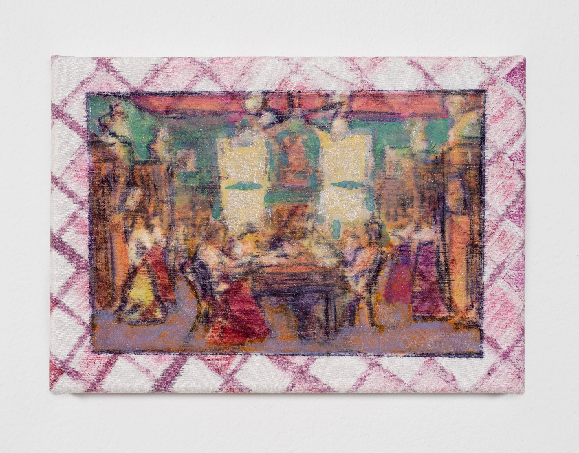 Cosima zu Knyphausen, “inquietud“, 2022, Ink, pastel, acrylic and vinyl paint on fabric, 19 x 27 cm