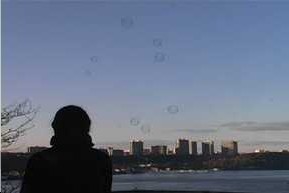 Making Places is a series of videos and prints. In each segment, or image, something between an activity and a gesture is performed over an urban landscape; a figure blowing bubbles at a cityscape, emerging with a flashlight from among the lights of the street, scattering papers at a building, etc. Each action aims at changing, charging, or completing the structure of an urban image.