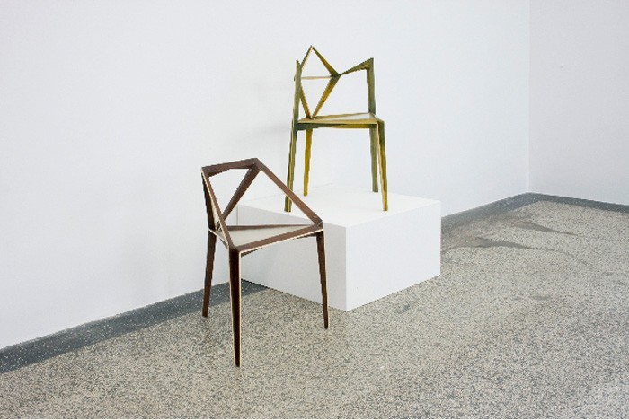 Jochen Weber builds things. And he surfs. Or rather, he has surfed at first and then started to build things. The objects are made of fiberglass and polyester resin - the material which is used to build Surfboards . The things look as if they could be chairs and tables - or perhaps an entirely different thing, that only pretends to be a chair or a table. Some of the objects intersect the space dynamically in their sharp edginess and triangularity. You want to jump on them and start surfing. Others brim over with beauty, with their colors and shapes and their perfectly-imperfect hand-shaped surfaces. Still others almost dissolve in skeletal minimalist materiality - they come directly from the world of ideas to us and take just enough shape so we can see them. The objects touch us through looking at them, smelling them, the want to touch them and they demand our vigilance and cautiousness - hybrids between here and elsewhere. Precisely in this intermediate realm of functioning and definable thing and the thing in itself, the former surfing sculptor Jochen Weber moves with his art.