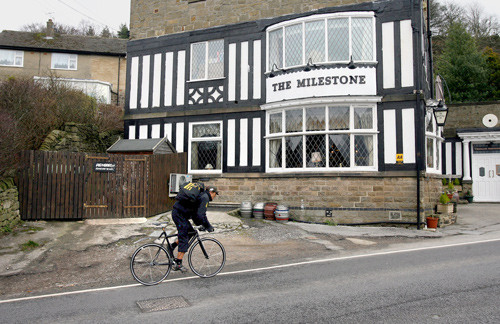 Bicycle messenger delivery from Manchester to Sheffield. Courtesy the artist and Klosterfelde, Berlin. Photo: Lee Boswell