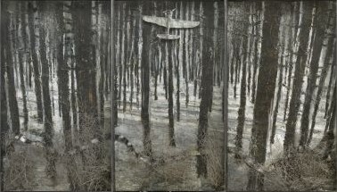 The new work continues to confront the violence and paradoxes of human history, its endless cycle of creation and destruction. The paintings are allusive, not illustrative, with an emphatic material and spiritual presence. They seem almost sensuously painted but are the result of a long process during which both the artist and the elements have attacked the canvas.