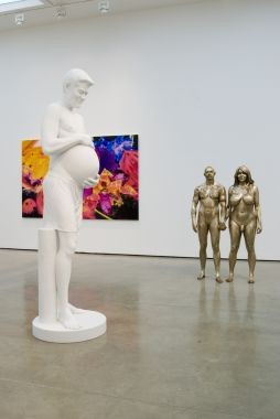 Quinn's portrait sculpture 'Buck & Allanah' depicts the couple standing hand in hand, like a latter day Adam and Eve, striding out into their future as radically altered beings. The sculpture of Thomas Beatie depicts him at full-term pregnancy, shyly bowing his head and cradling his stomach with two hands, appearing like a masculine Virgin Mary, displaying some kind of miraculous conception.