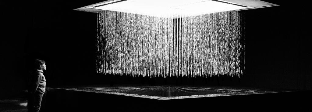 The monumental »3D WATER MATRIX« in the ZKM_Foyer alternately shows »waterworks« by Shiro Takatani (Japan) and Christian Partos (Sweden). It heralds the beginning of a new generation of digital water technology. As you enter the black cube of the installation, a theatrical atmosphere unfolds before the spectator’s eyes: Accompanied by mechanical sounds, as if drawn in the air by a ghostly hand, figures and patterns appear in the middle of the darkened room and linger for a moment before evolving to be replaced by surprising new shapes. The »3D WATER MATRIX« will be shown in the ZKM_Foyer until 4 September.