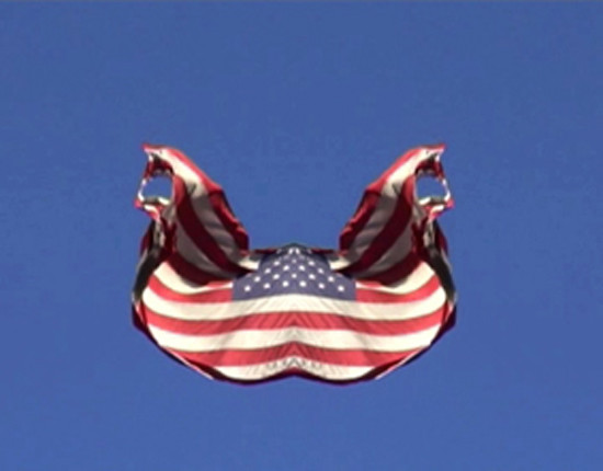 In the video installation “Vampa,” by Stefano Cagol (*1969, Trient), we encounter the same sense of irritation. The artist takes the North American flag as the basis of his work. Hardly any other national symbol in the Western World is as ubiquitous and linked to such different meanings. For the one, the flag continues to represent the American dream of freedom, democracy and the struggle against fundamentalist terror, while for the other it signifies the acts of belligerence and capitalist imperialism over recent decades. In his video, Cagol mirrors the virtually manipulated image of the waving flag, which thus assumes ever new iconic, occasionally anthropomorphic forms. Associations with vampires, masks, flowers, bats, emblems, and fighter jets are evoked. Here, as in the Rorschach test, imagination and mind-games take the place of the unswerving belief in state symbology. Cagol thus demonstrates the way in which, in a different context, a symbol of freedom may otherwise stand for violence and war. He also pursues this ambiguity of signs in the play on the word Vampa, which means flame and is reminiscent of vampire, and vamp, which alludes to the transformation of signs and images. It is no mere coincidence that the title one of the first versions of the video is “Lies.”